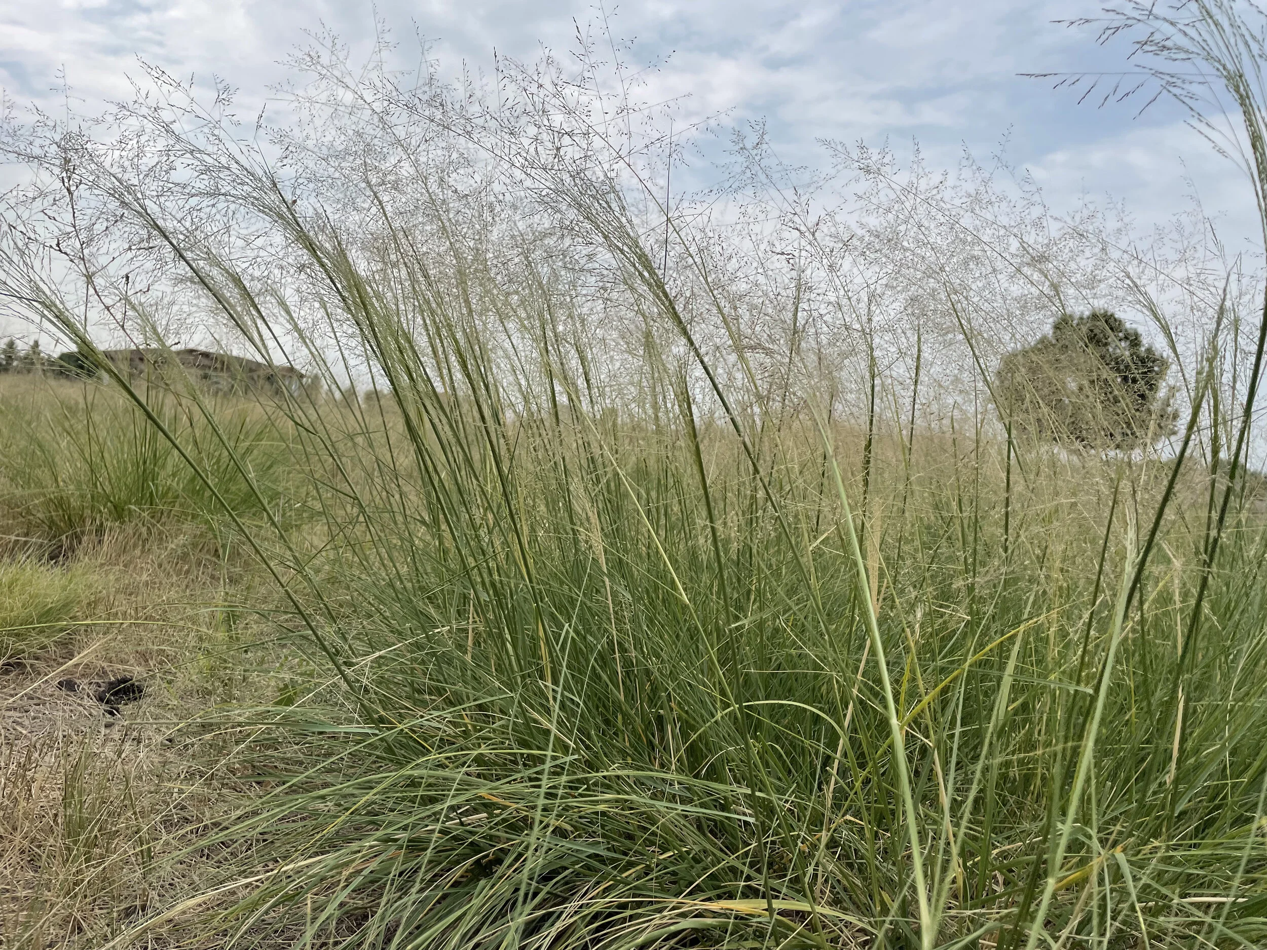 While typically difficult to find at commercial nurseries, Sporobolus airoides is used in nearly every highway seeding project in Colorado. Highly tolerant of extreme stress and poor soil quality, Sporobolus airoides thrives in dry sun. Large airy panicle seedheads (similar to its cousin S. wrightii though not quite as large) can produce a billowy effect when planted in masses and once established. Sporobolus airoides is one of the first warm season grasses to produce seedheads, in mid to late June that fade from a slightly pink hue to blonde. While seedheads tend to deteriorate after snow, the soft texture of this grass will last through the summer and into autumn.